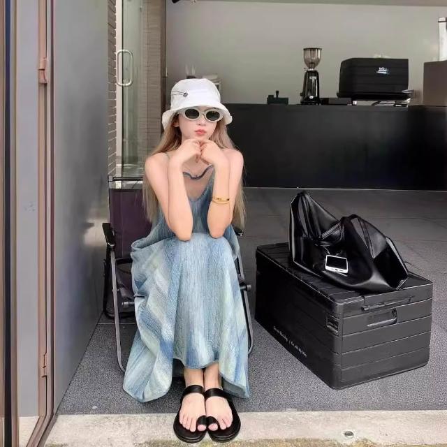 法式絕美扎染吊帶連衣裙女夏季寬鬆慵懶風三亞海邊度假沙灘長裙子