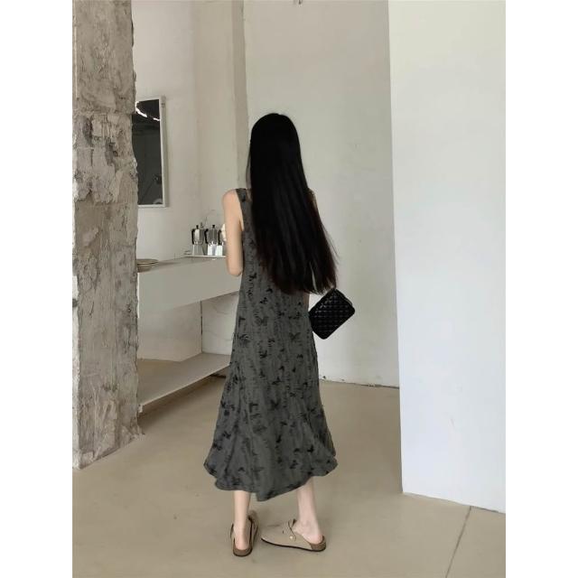 法式~夏季新款蝴蝶吊帶洋裝 洋氣時髦氣質緊身顯瘦破洞設計感長裙 女生夏天裙子