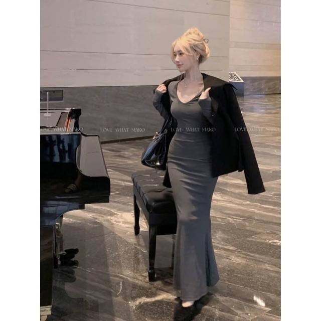 魚尾純慾風辣妹子連衣裙法式春鞦季收腰包臀裙顯瘦打底新款長裙子