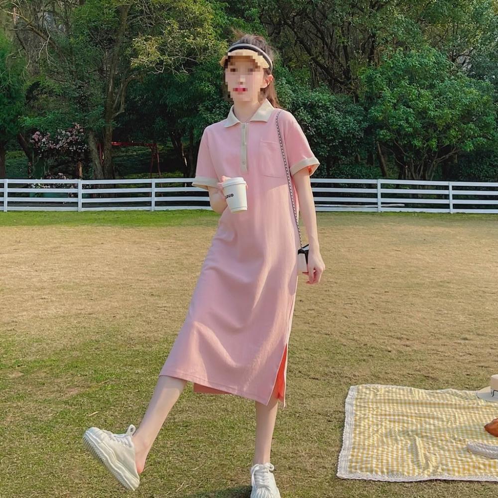 粉色polo連衣裙女夏2025新款小個子甜美奶甜茶歇法式可甜可鹽裙子