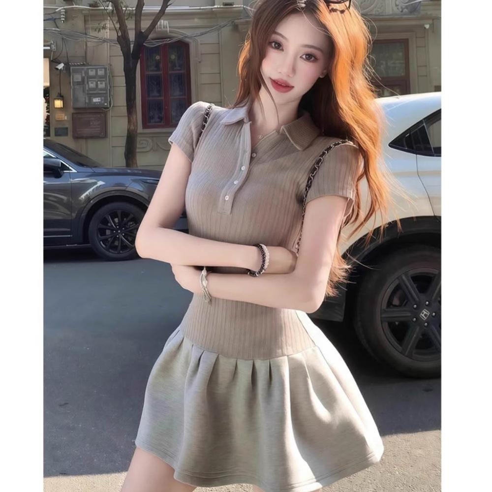 法式polo領短袖連衣裙女春季高級感小個子氣質修身收腰顯瘦包臀裙
