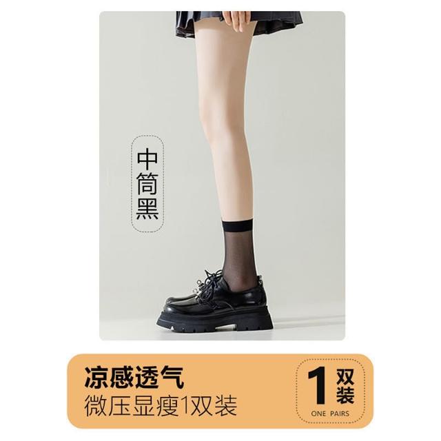 夏季薄款小腿襪女 黑絲襪長筒jk透膚過膝襪純色瘦腿襪學院風