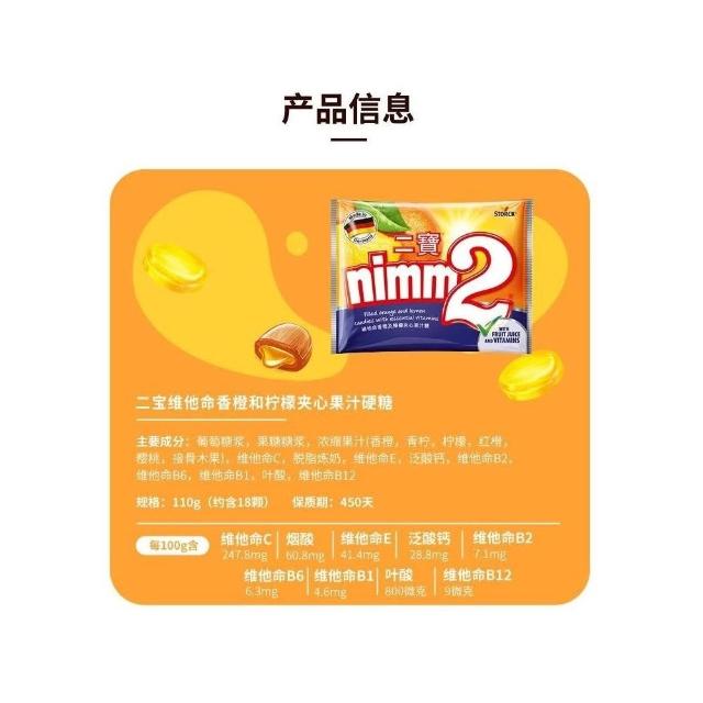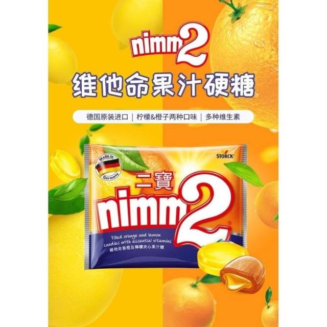 糖果 德國nimm2二寶糖香橙檸檬水果汁夾心硬糖維C童年小零食糖果110g