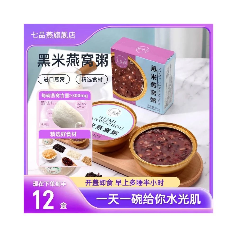 七品燕 黑米燕窩粥早餐代餐方便速食孕婦營養免煮開罐即食粥