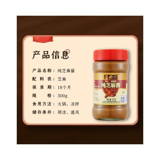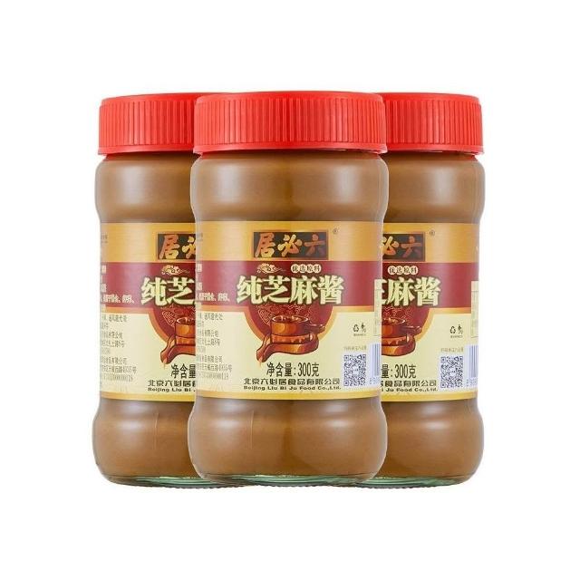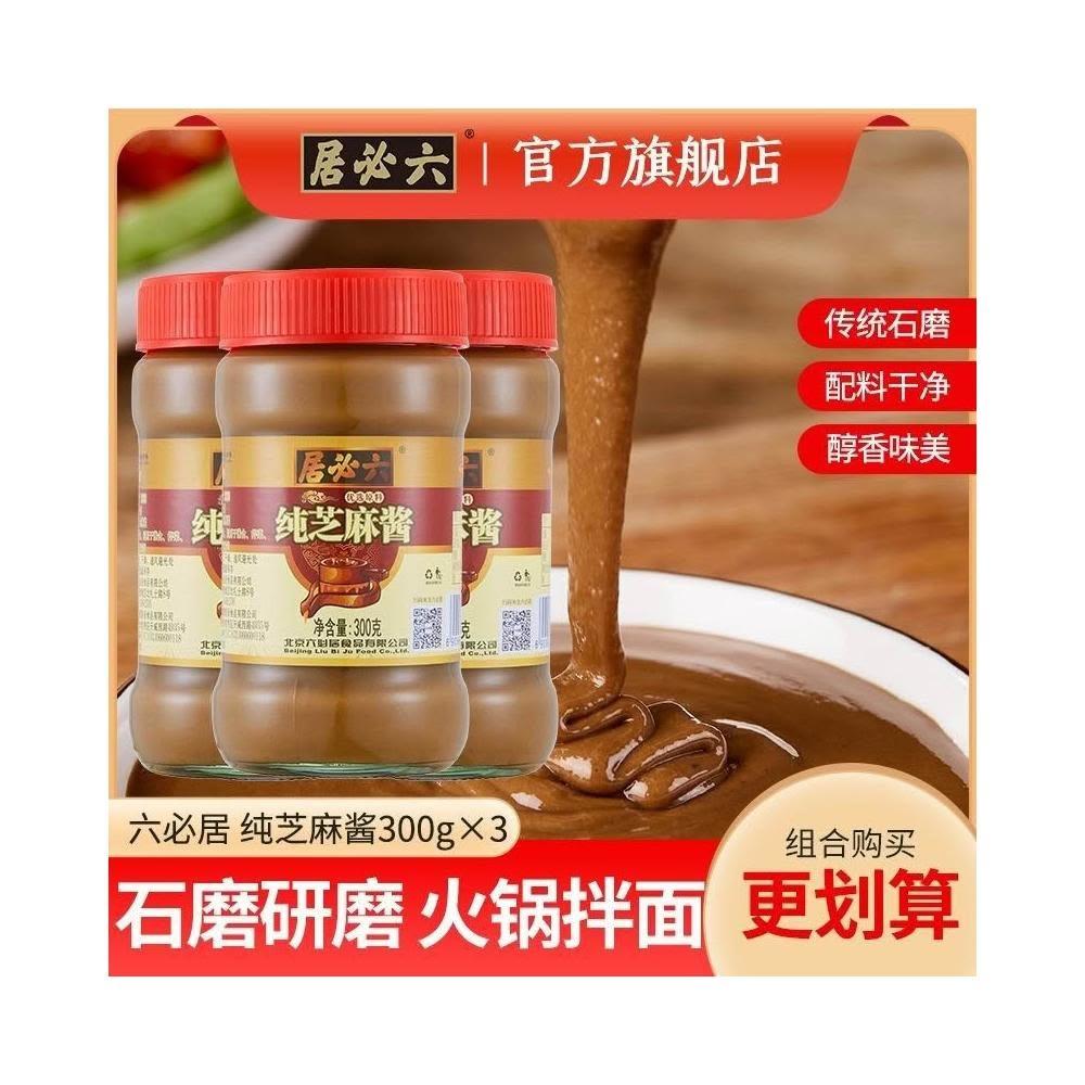 純芝麻醬 六必居純芝麻醬300g*3瓶組合裝石磨研磨香醇火鍋沾料麻醬