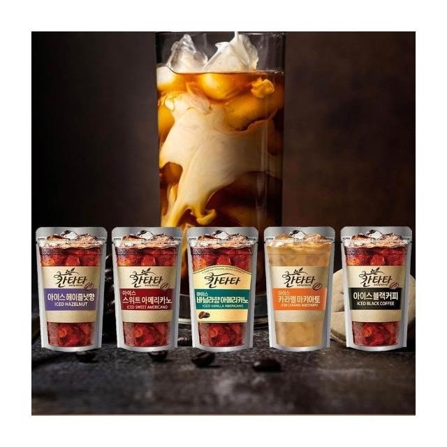 韓國康塔塔黑咖啡 冰咖啡樂天康塔塔冰滴冷萃焦糖榛果甜美式即飲黑咖啡袋裝