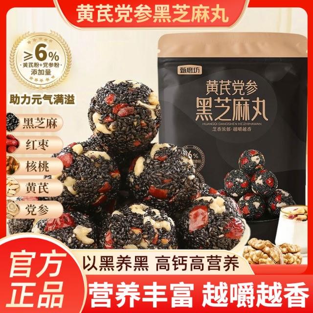 黑芝麻丸 甄磨坊黃芪黨參黑芝麻丸 營養休閒解饞小零食 紅棗核桃黑芝麻丸球
