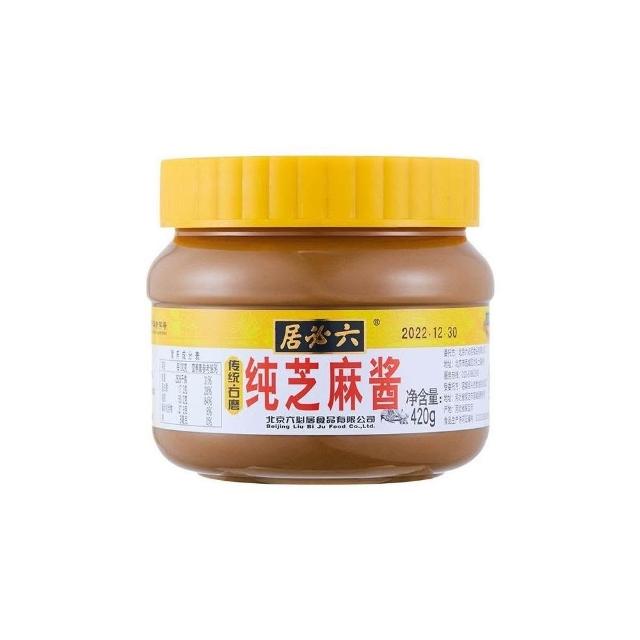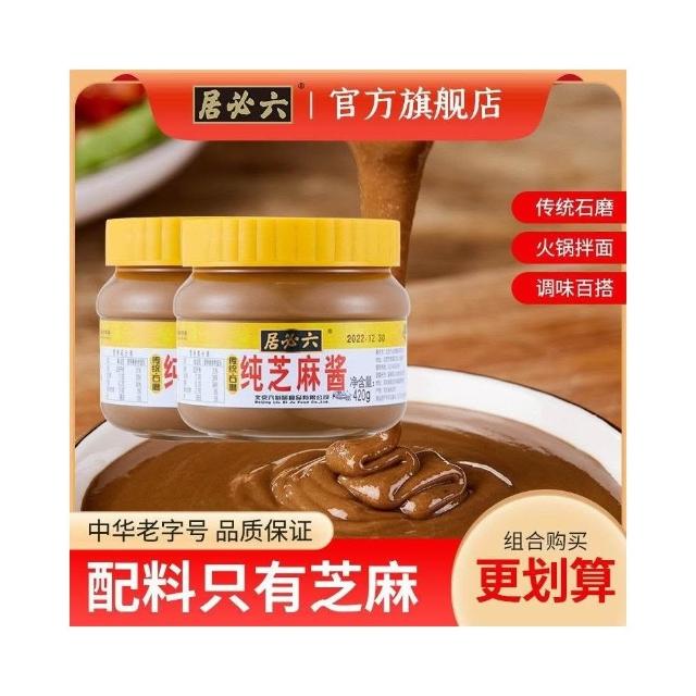 純芝麻醬 六必居純芝麻醬420g*2瓶純芝麻研磨火鍋麻醬沾料下飯拌麵醬