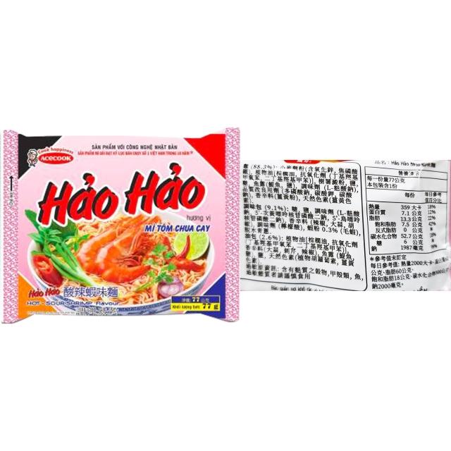 越南 HAO HAO 泡麵 (酸辣蝦/沙嗲/雞肉/蝦蔥味/蝦味) 10包/組