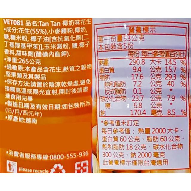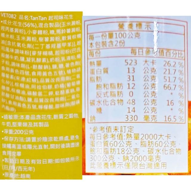 越南 TANTAN 脆皮花生 椰子-265g、奶酪/蝦味/燒烤-200g