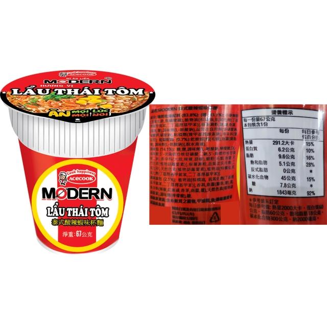 越南 Modern 泰式酸辣蝦味杯麵 67克/杯
