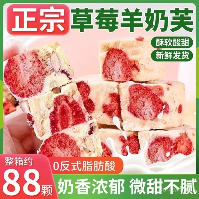 小食糖 草莓羊奶芙草莓味雪花酥堅果糕點網紅休閒小零食獨立包裝