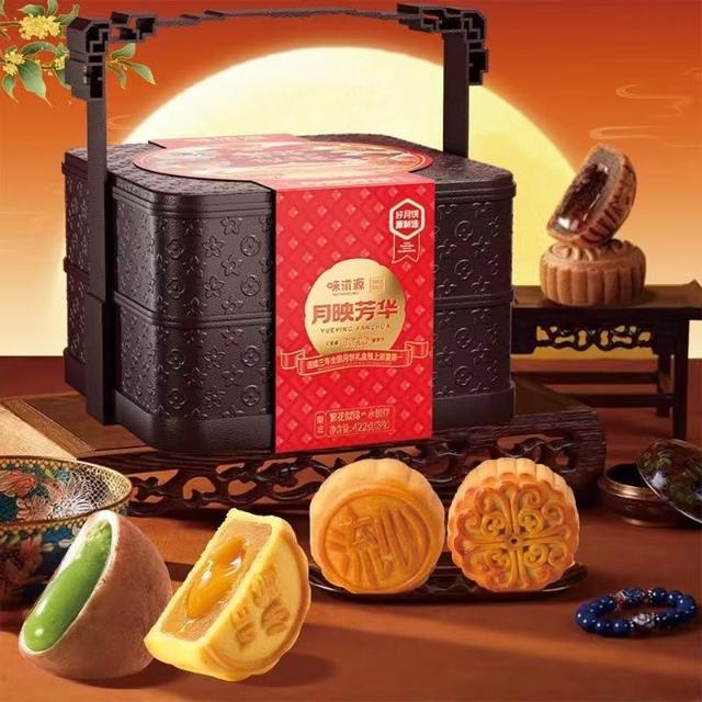 味滋源月享佳禮中秋月餅禮盒奶黃流心廣式豆沙味中秋月餅節日送禮
