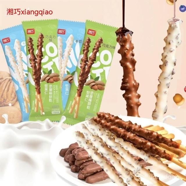 熱賣中巧克力味餅乾堅果仁長條孩子塗層手指餅乾棒網紅食品零食小喫