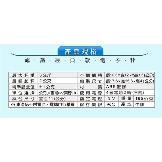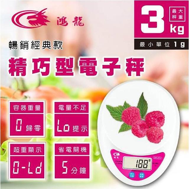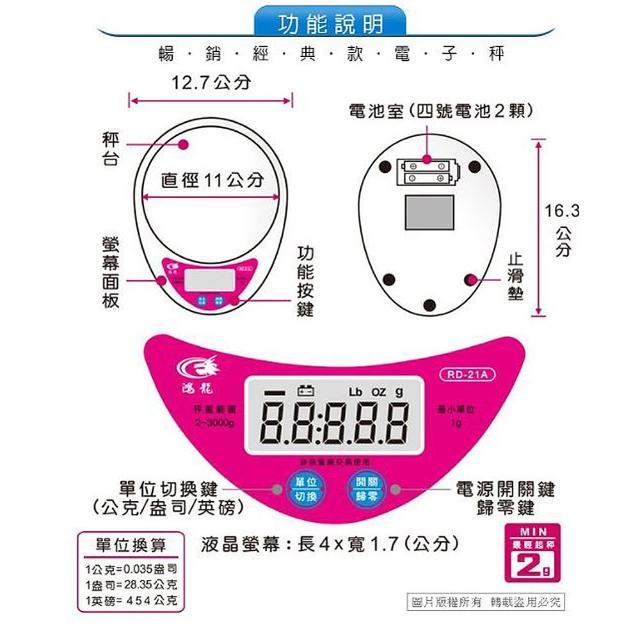 Dr.AV 聖岡科技RD-21A鴻龍 精巧型 電子秤2公克~3公斤(單位切換 容器扣重 超重顯示 電量不足提示 輕巧 烘培秤 料理秤 廚房秤