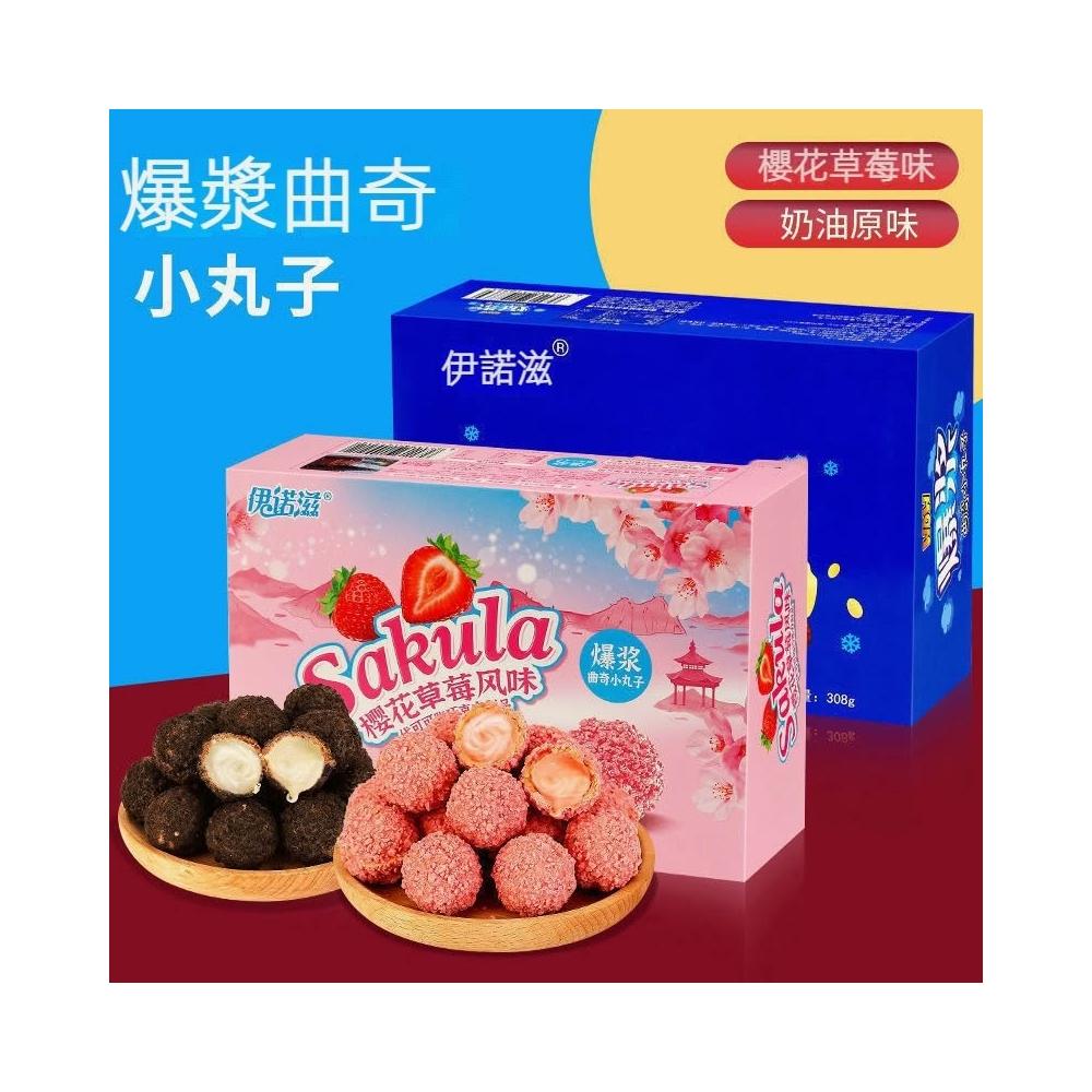 爆漿巧克力小丸子 爆漿曲奇小丸子 伊諾滋小丸子 櫻花草莓味 脆皮夾心巧克力球
