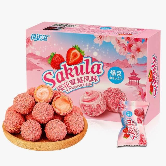 爆漿巧克力小丸子 爆漿曲奇小丸子 伊諾滋小丸子 櫻花草莓味 脆皮夾心巧克力球