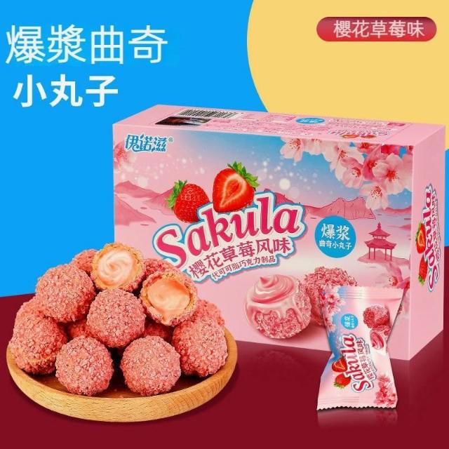 爆漿巧克力小丸子 爆漿曲奇小丸子 伊諾滋小丸子 櫻花草莓味 脆皮夾心巧克力球
