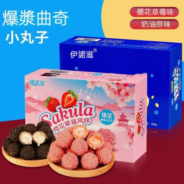 爆漿巧克力小丸子 爆漿曲奇小丸子 伊諾滋小丸子 櫻花草莓味 脆皮夾心巧克力球