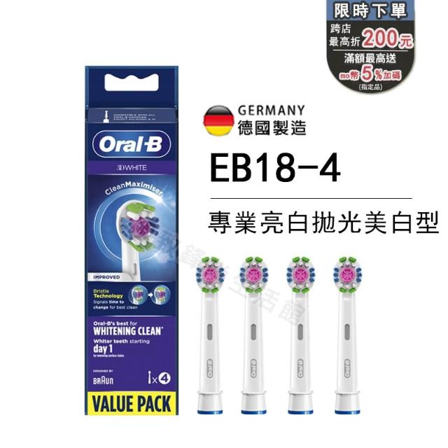 Oral-B 歐樂B德製 百靈 歐樂 電動牙刷刷頭 EB18-4 專業亮白拋光型 4入組 美白型刷頭 電動牙刷 替換刷頭 軟毛刷