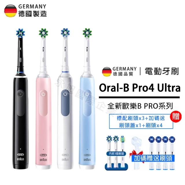 Oral-B 歐樂B德國百靈 Oral-B 3D電動牙刷 PRO4 牙刷 PRO ULTRA曜石黑/貝加爾湖藍/馬卡龍粉/北歐白 牙刷頭