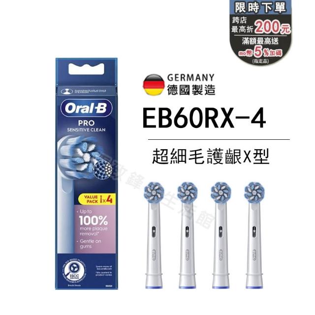Oral-B 歐樂BOral-B 歐樂B 電動牙刷 EB60 牙刷頭 原廠刷頭 電動牙刷頭 EB60RX超細毛護龈x型刷頭 4支刷 原廠刷頭