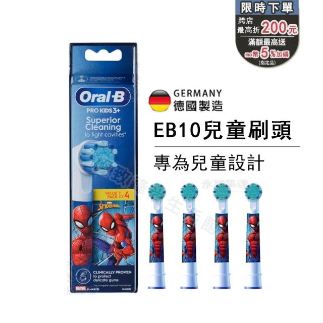 Oral-B 歐樂B德製 歐樂B 電動牙刷刷頭 兒童刷頭 EB10 4支裝 Kids 刷頭 兒童 蜘蛛人兒童電動牙刷 替換刷頭 軟毛刷