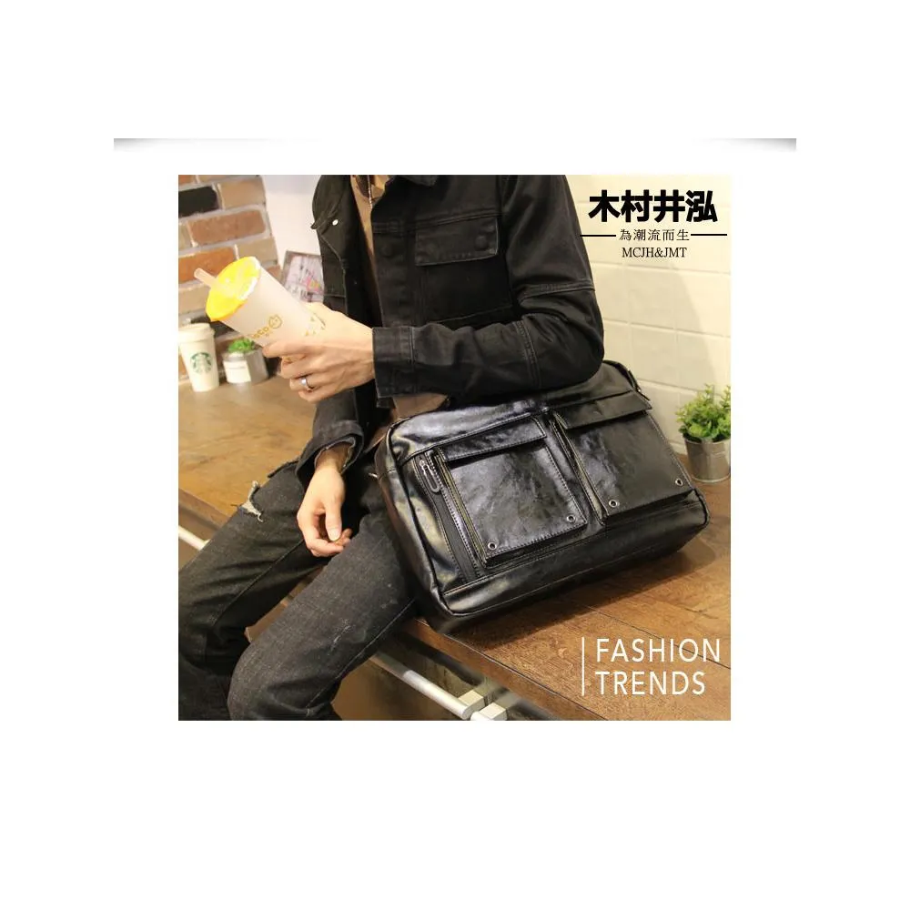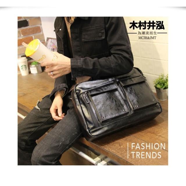 木村井泓復古休閒皮革斜背包 單肩包 側背包 公事包 手提包(P1905)(有附肩帶)