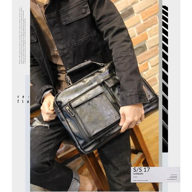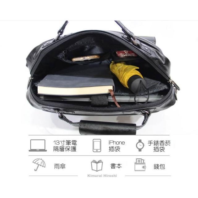 木村井泓復古休閒皮革斜背包 單肩包 側背包 公事包 手提包(P1905)(有附肩帶)