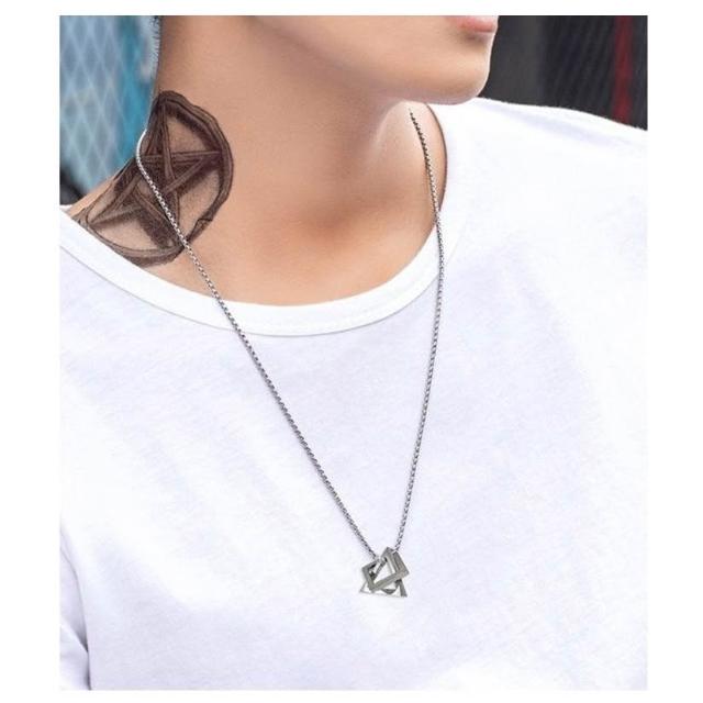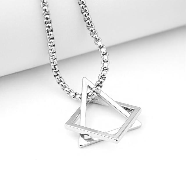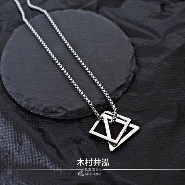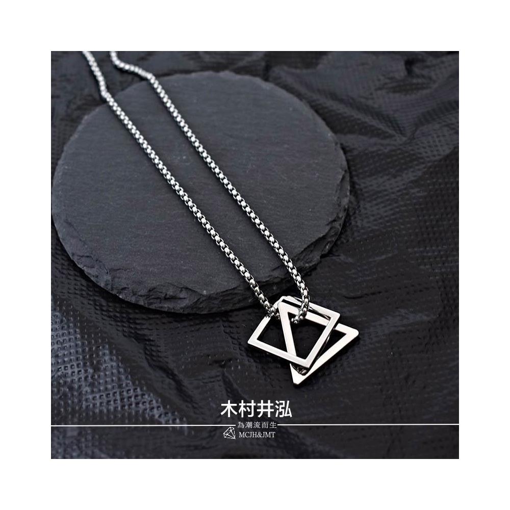 木村井泓幾何三角正方造型項鍊 純鋼配鏈 韓版項鍊 鈦鋼項鍊 鎖骨鏈 吊墜 長項鏈 男款(CXR22031101)