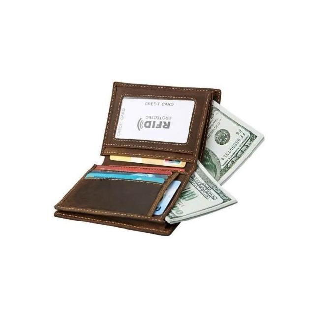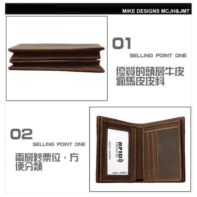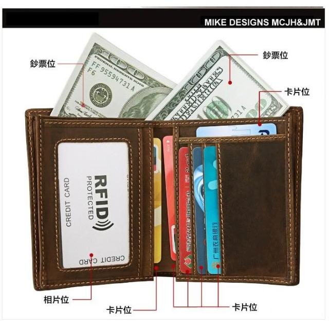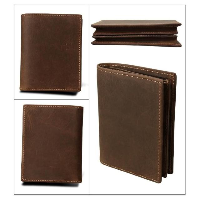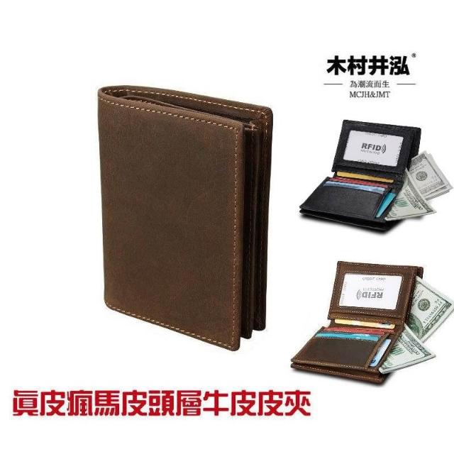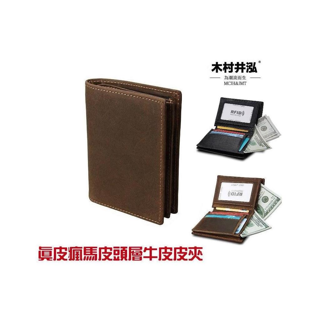 木村井泓瘋馬皮真皮皮革皮夾 短錢包 短夾(E8012)
