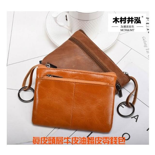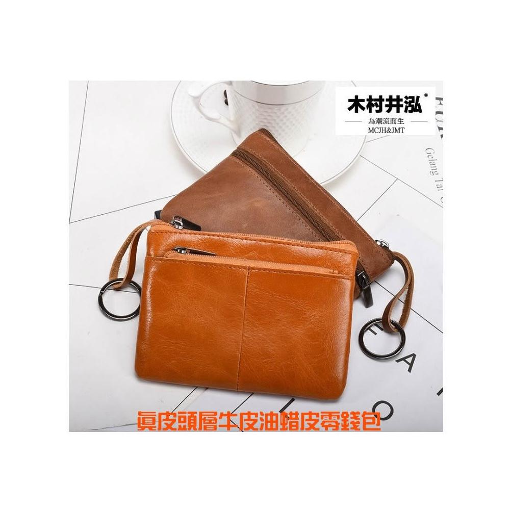 ㊣木村井泓 真皮頭層牛皮油蜡皮零錢包 拉鏈包 皮包 錢包 卡片包 (R127)