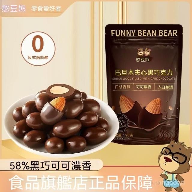 熱賣中 憨豆熊巴旦木夾心黑巧克力540g袋裝純可可脂堅果爆款休閒零食