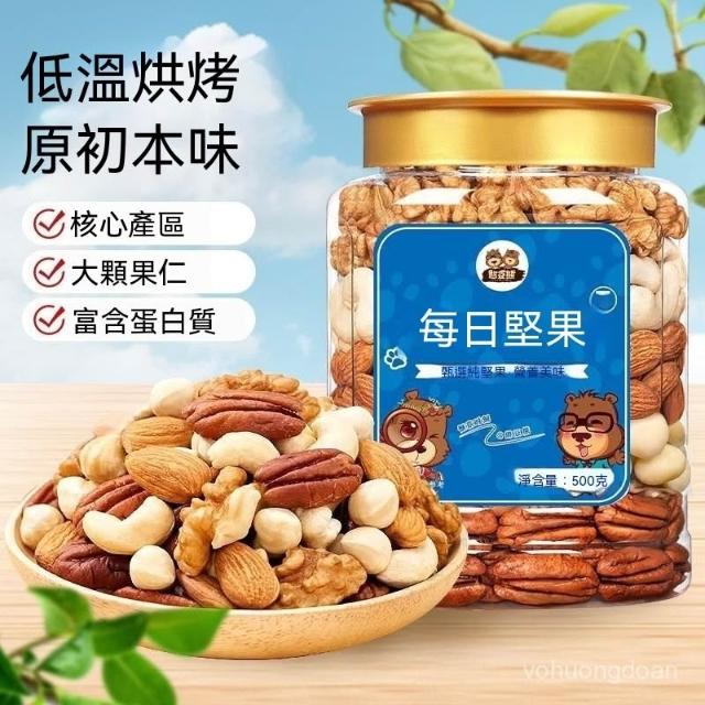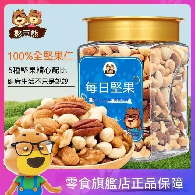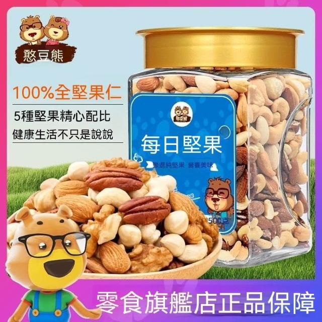 熱賣中 憨豆熊每日堅果100%純堅果500g/罐裝混閤果仁休閒零食混閤乾果仁