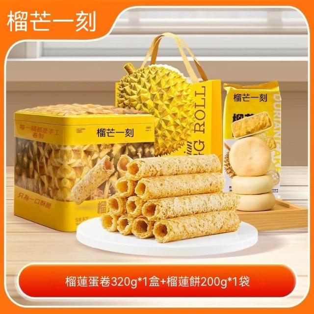 熱賣中【優先購】榴芒一刻榴蓮捲手工320g港式捲黃油解饞零食精美禮盒餅乾送禮
