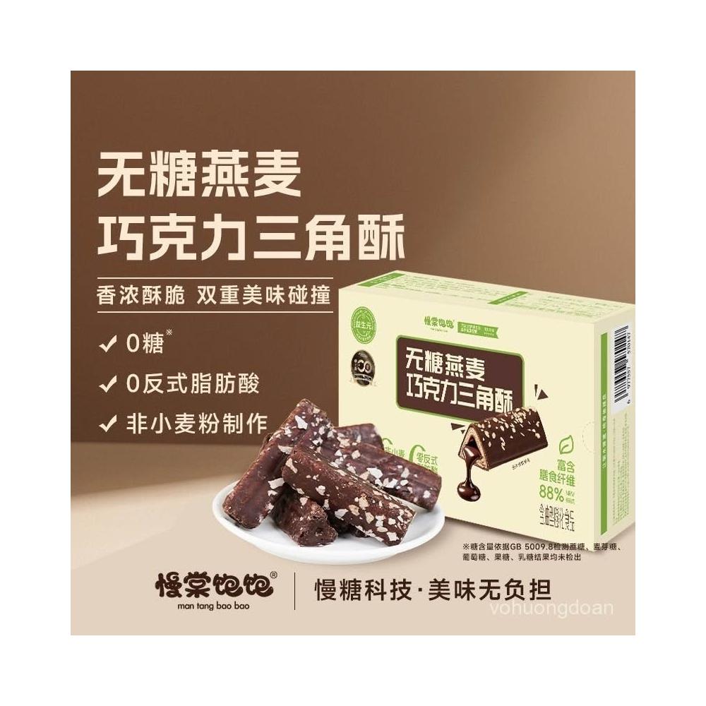 熱賣中【優先購】慢棠飽飽無糖巧克力三角酥熔巖孕㛿可可米果夾心棒零食0糖燕麥棒