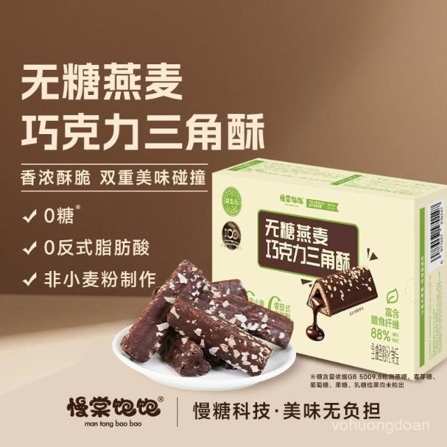 熱賣中【優先購】慢棠飽飽無糖巧克力三角酥熔巖孕㛿可可米果夾心棒零食0糖燕麥棒