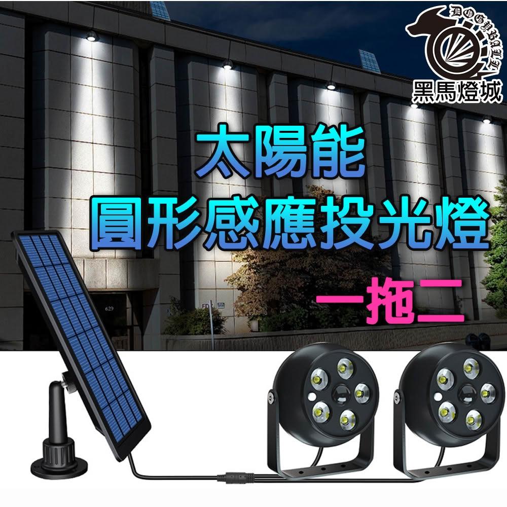 太陽能一拖二感應投光燈|【黑馬燈城】|一拖二/庭院燈/草坪燈/插地燈/景觀燈/LED/防水/投射/兩用燈/裝飾【B4010】