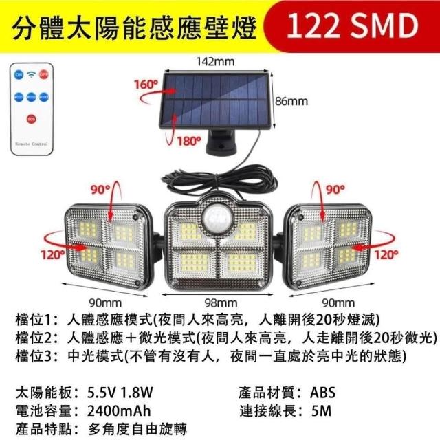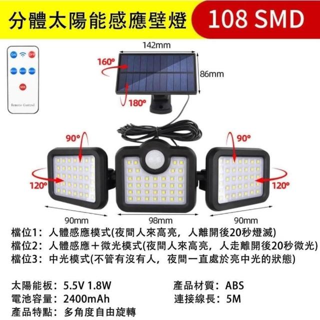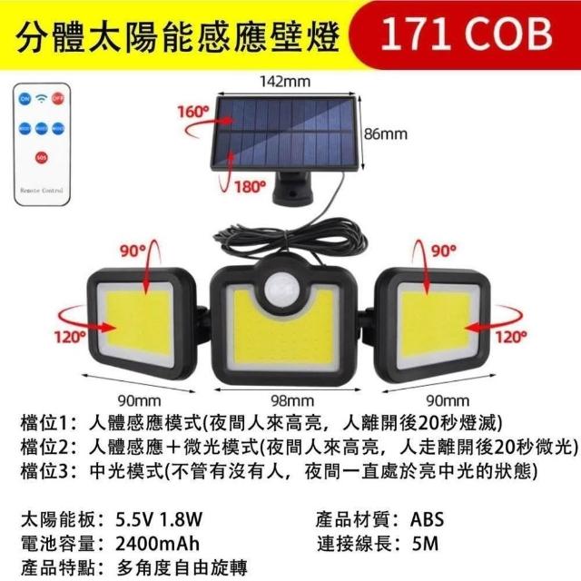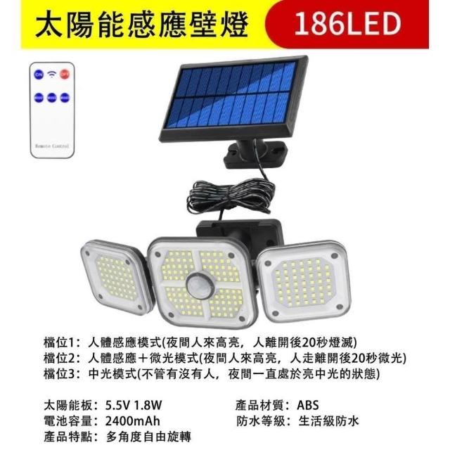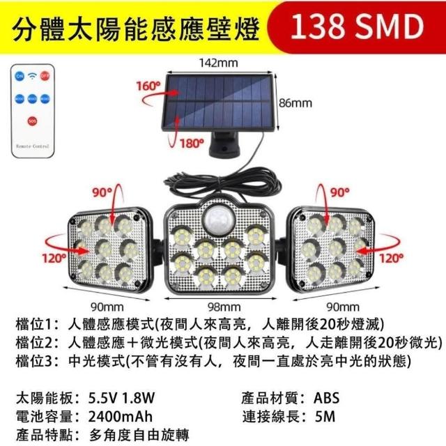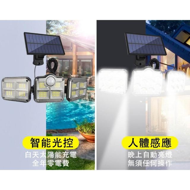 太陽能三頭感應壁燈|【黑馬燈城】|分體式/COB/高亮/路燈/LED/庭院燈/車庫燈/大門/露營/免插電【A760】