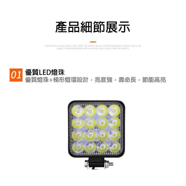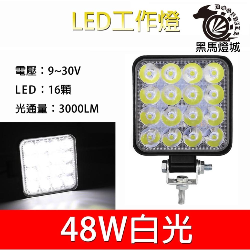 車LED工作燈|【黑馬燈城|16LED/48W/日行燈/輔助燈/霧燈/探照燈/照輪燈/警示燈/照明燈【A985】