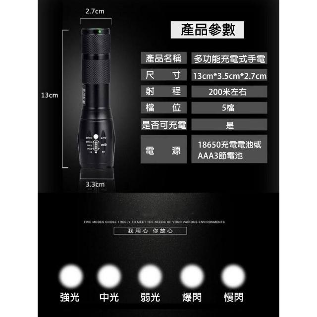 L2強光手電筒|【黑馬燈城】|充電手電筒/防身/伸縮手電筒/變焦手電筒/戰術手電筒/工作燈/露營燈【A444】