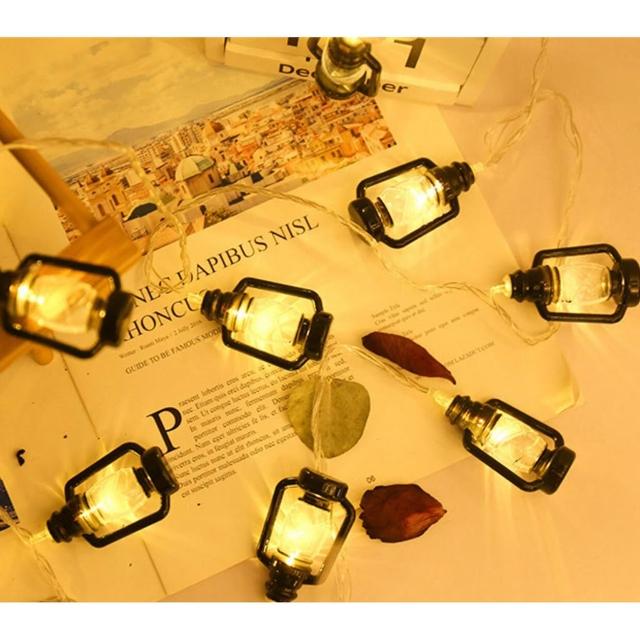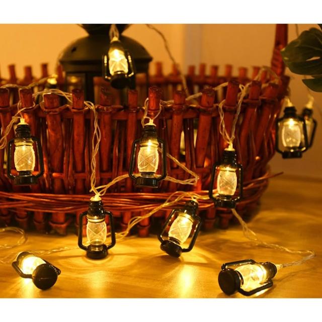 太陽能迷你煤油燈串|【黑馬燈城】|滿天星/拍照背景燈/彩燈/派對燈/造型燈串/萬聖節/煤油瓶/復古/馬燈【A1794】