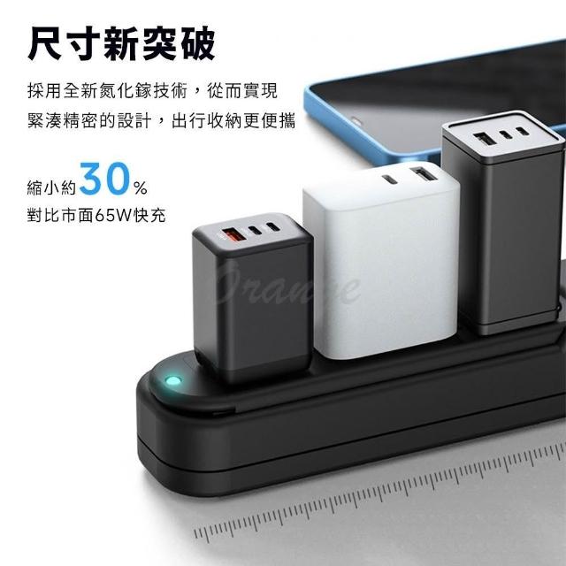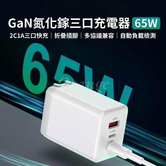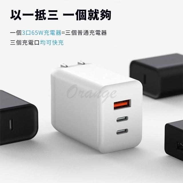 GaN氮化鎵三口充電器 65W 快充 閃充 旅充頭 充電頭 豆腐頭 USB PD QC 平板 手機