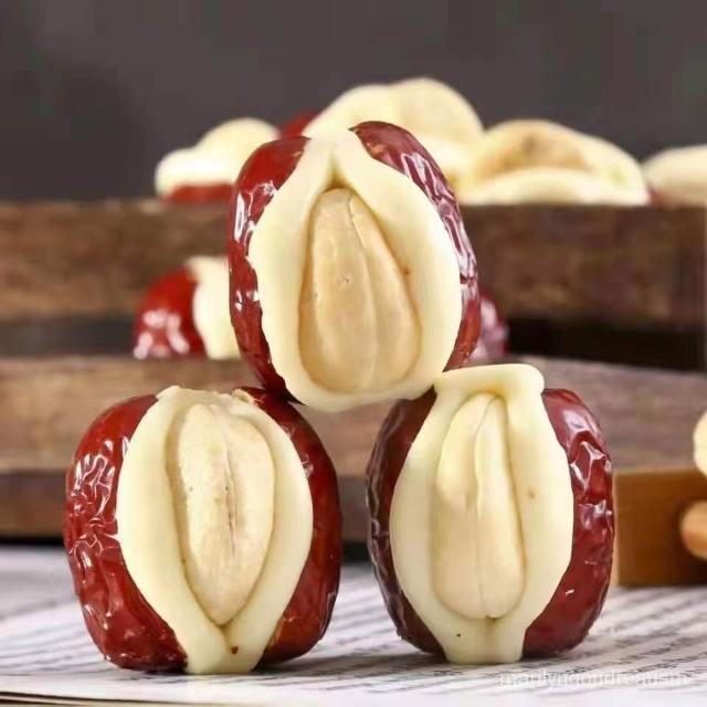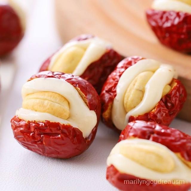 小桃喜 新疆直髮腰果奶棗奶芙棗獨立包裝夾心奶酪解饞休閒堅果零食500g