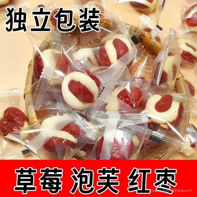 小桃喜 草莓泡芙棗獨立包裝棉花糖奶香痠甜可口夾心奶棗紅棗網紅休閒零食