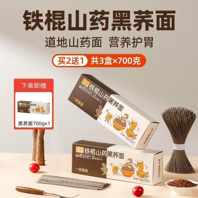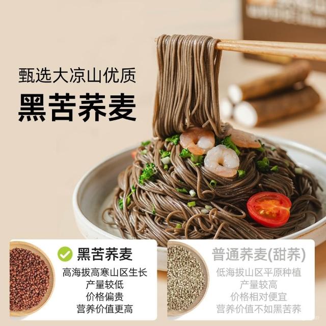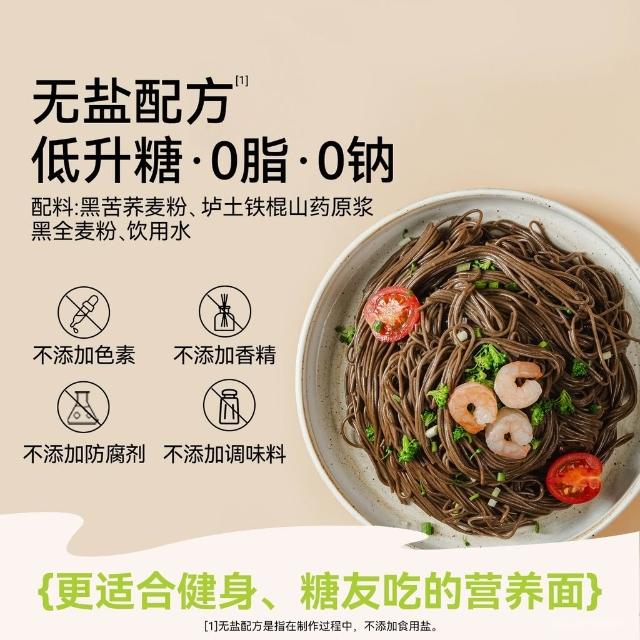 心心相印 鐵棍山藥黑蕎麥麵0脂無鹽健康黑麥粗雜糧苦蕎芥麥麵條代餐低脂
