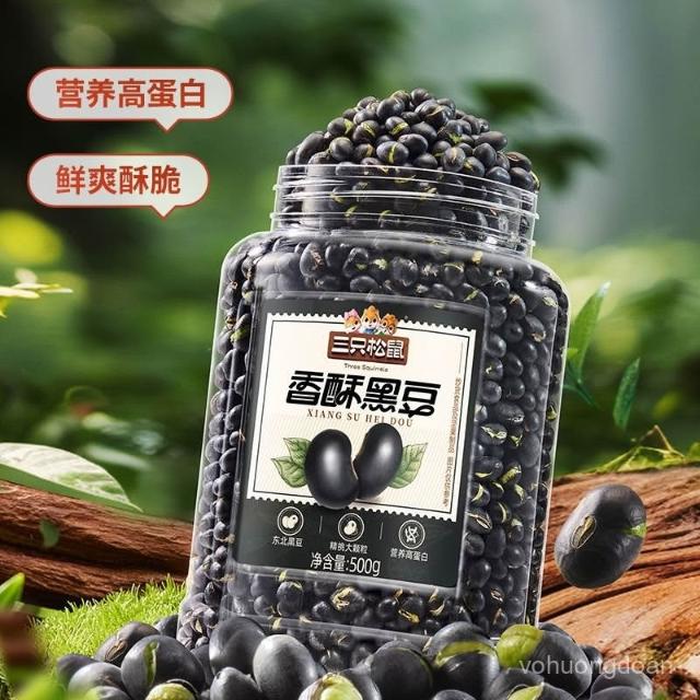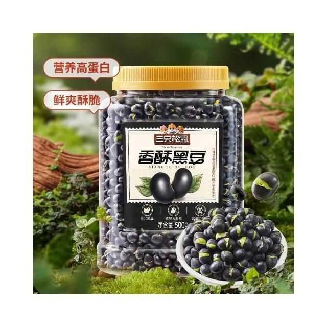 心心相印 三衹鬆鼠鹽炒黑豆500g*1罐休閒零食炒豆黑豆