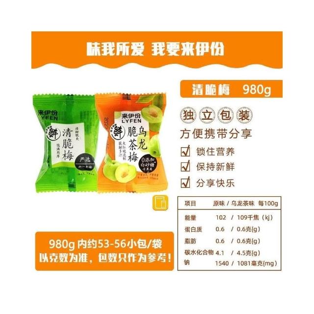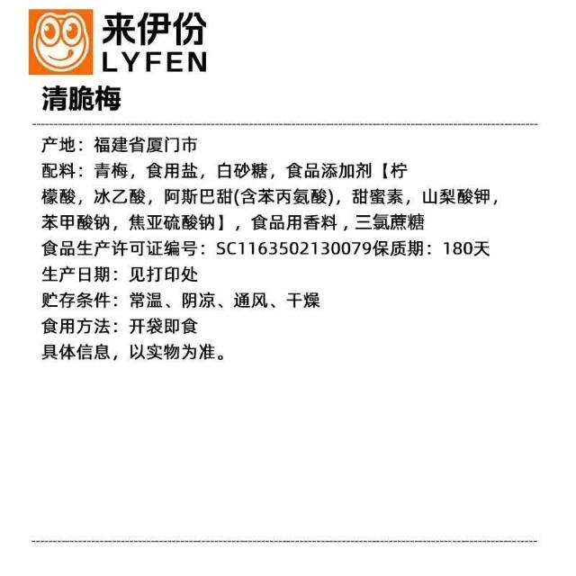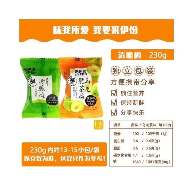 心心相印 來伊份清脆梅230g爽脆鹽漬青梅子果脯蜜餞涼果解饞休閒零食小包裝
