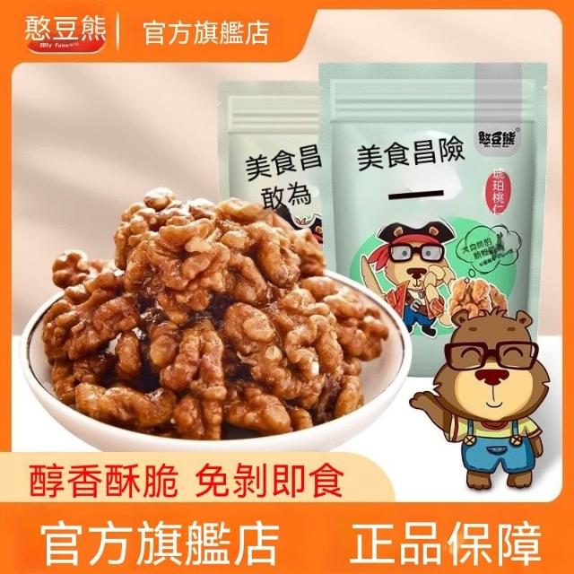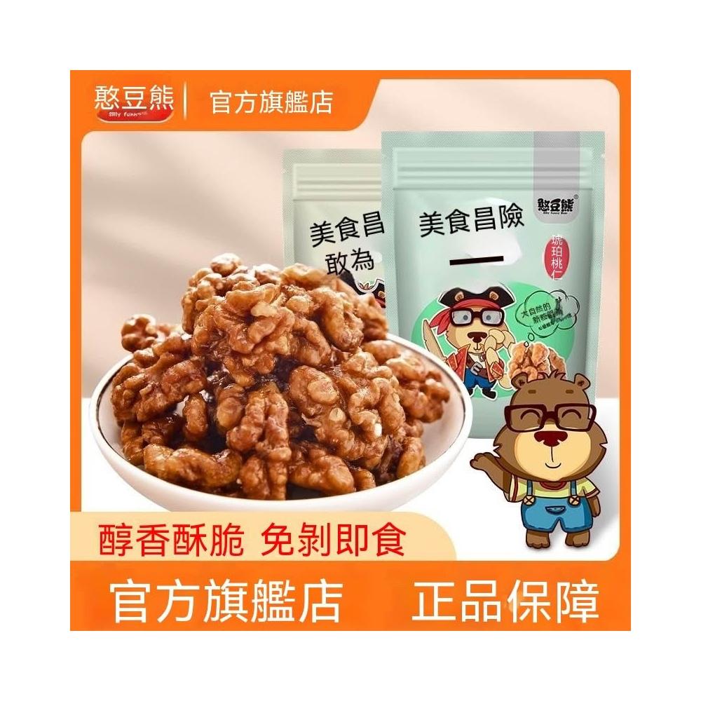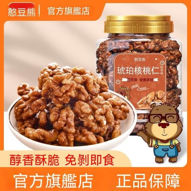 熱賣中 憨豆熊 琥珀核桃仁蜂蜜味500g袋裝凈重芝麻味卽食堅果仁零食108g
