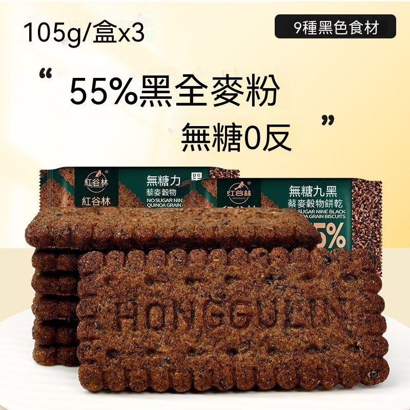 熱賣中[嘴饞優選] 紅穀林無糖9黑藜穀物餅乾解饞小零食健康網紅辦公室早餐粗糧105g